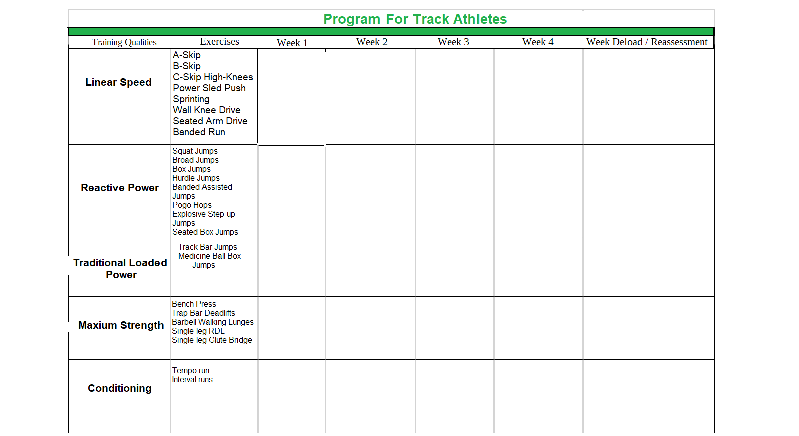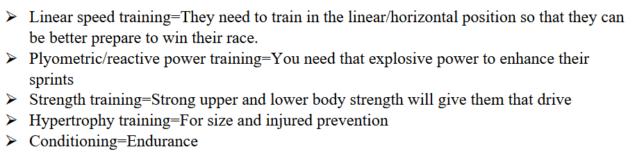 Next, if you were to training a track athlete who does the 100 meters, these are the athletic qualities the athletes will need to be working on and why.