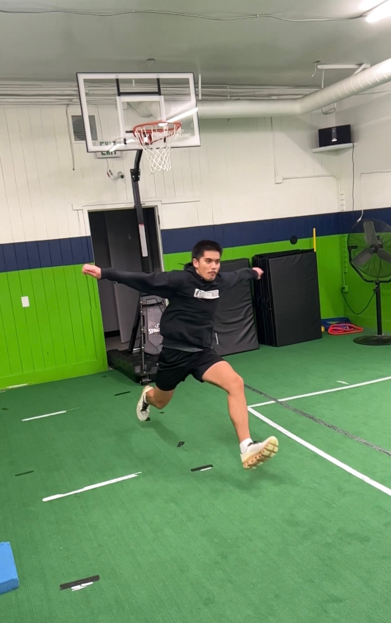 Also, when applying the turn stance, make sure their second steps (turn stance leg) before take-off is in a 45 degree angle. By doing so, they will be able to load eccentrically into the jump and generate massive amount of power before exploding concentrically.
